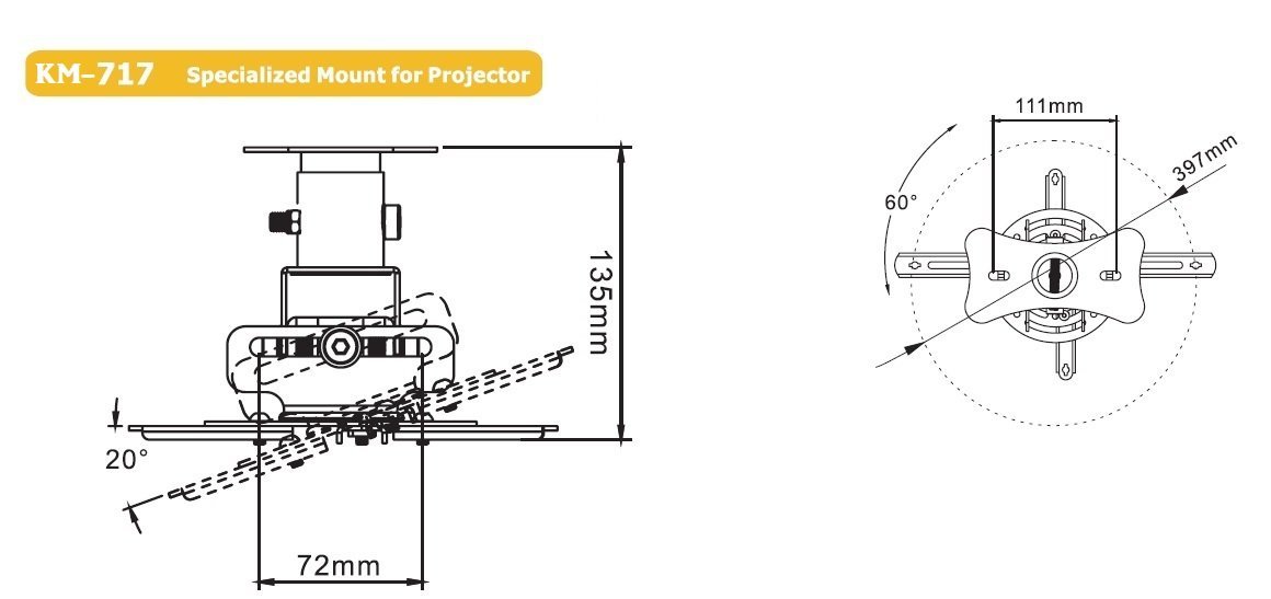 Uchwyt Sufitowy KM-717 13.5 cm 20 KG