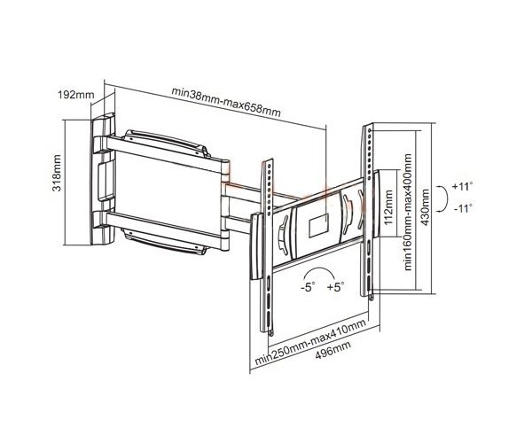 Uchwyt Uchylno-Obrotowy Na Ramieniu max 55" max 20 KG VM-T18-PRO