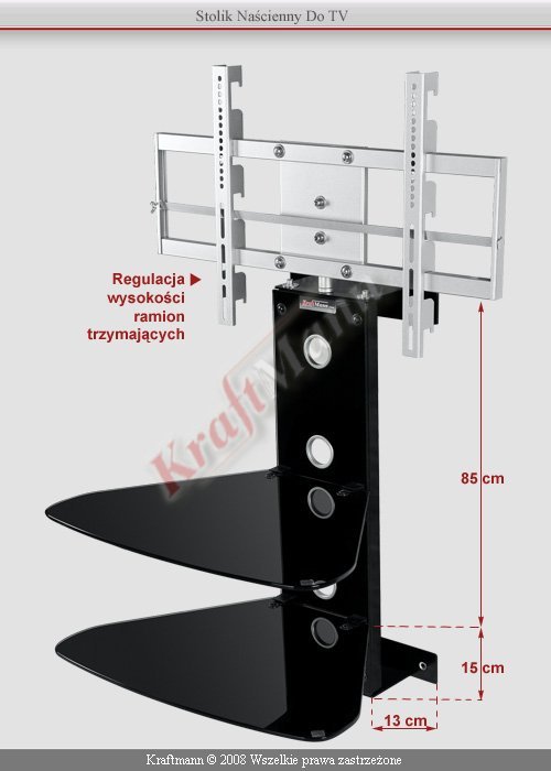 Stolik Ścienny ( Uchwyt + 2xPółka AV ) Do TV max 60" max 50 KG PDP-4260B-3