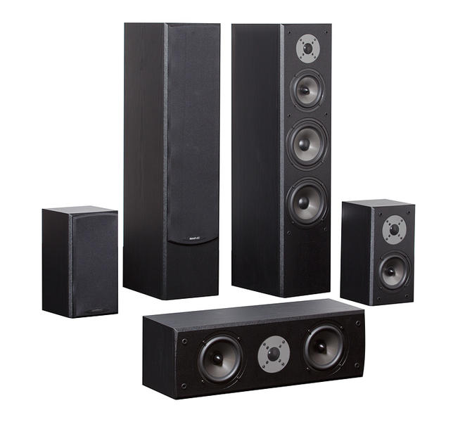 W skład systemu wchodzą: para głośników frontowych, para głośników surround i głośnik centralny.